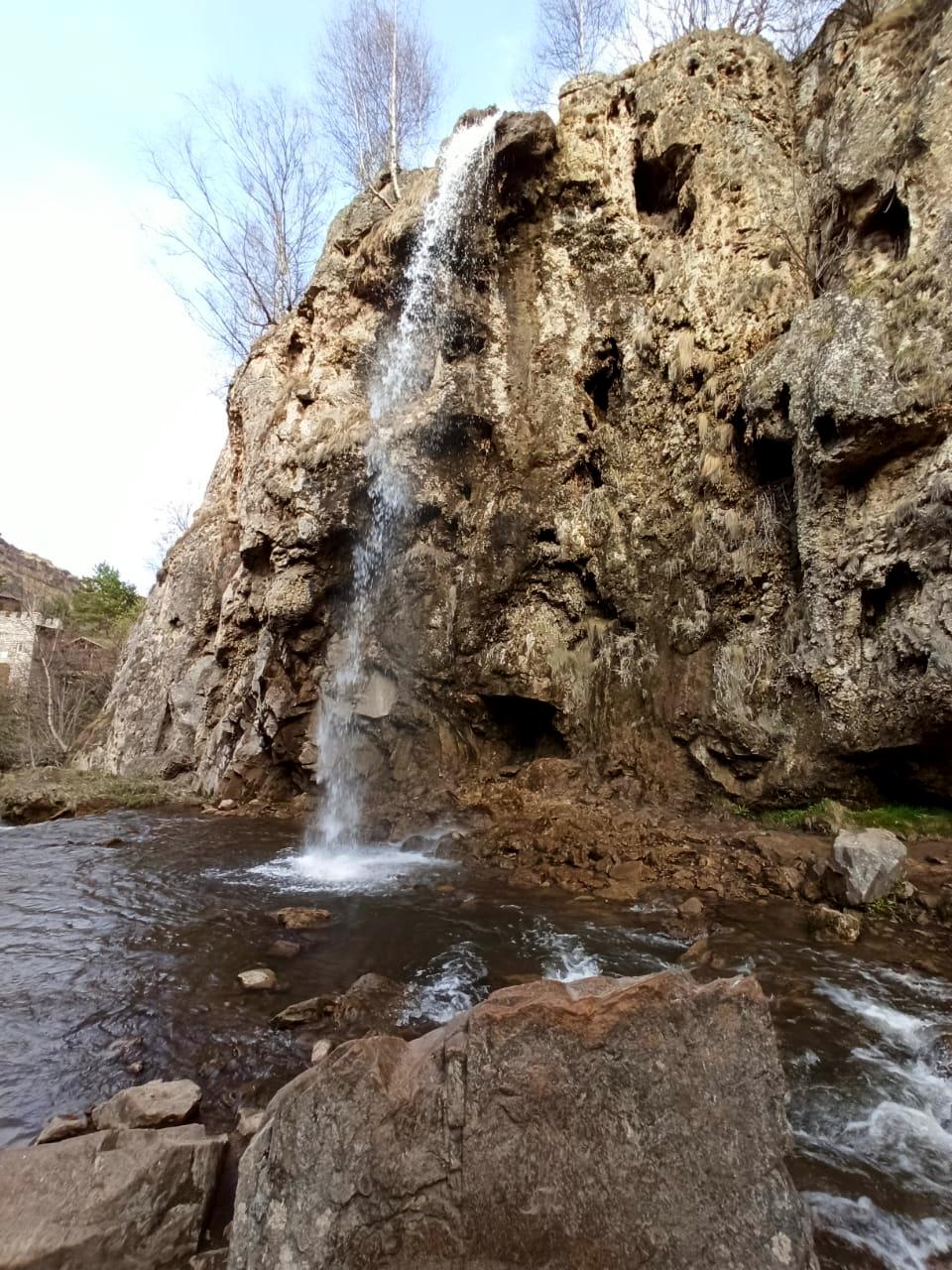 Медовые водопады, находящиеся в 20 км от Кисловодска, красивы (здесь за вход дополнительно нужно заплатить экологический сбор – 60 рублей с человека). Нас ведут до конечного пункта, сделав всего две остановки по паре минут в этнографическом домике-сакле карачаевцев, да в небольшом зоопарке, где есть баран-мутант с четырьмя рогами.