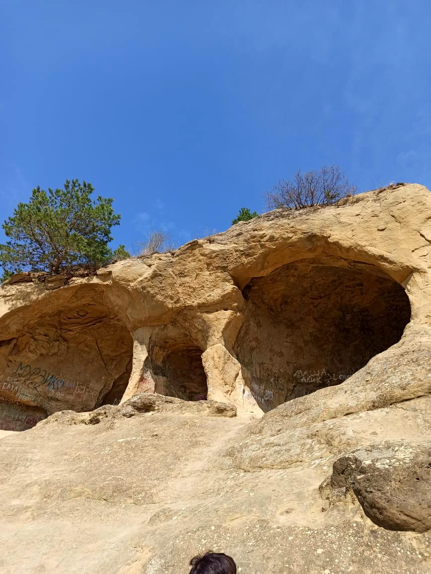 Наконец экскурсия началась! Первый пункт – Кольцо-гора, о которой писал еще Лермонтов в «Княжне Мэри»: «…Верстах в трех от Кисловодска, в ущелье, где протекает Подкумок, есть скала, называемая Кольцом; это — ворота, образованные природой; они поднимаются на высоком холме, и заходящее солнце сквозь них бросает на мир свой последний, пламенный взгляд. Многочисленная кавалькада отправилась туда посмотреть на закат солнца сквозь каменное окошко…»